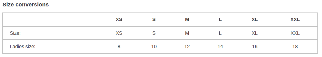 Size XS S M L XL XXL