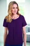 Short sleeve ladies' blouse, round neck, front pleat detail, bust darts, rear gold zip detail, easy care - machine washable at 30 degrees