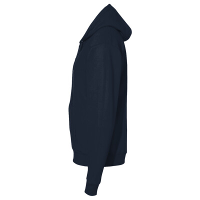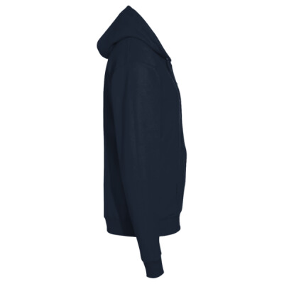 80% cotton/20% polyester. Cotton faced fabric. Drop shoulder style. Regular fit. Jersey lined hood with self colour flat drawcord. Metal eyelets and drawcord tips. Taped neck, shoulders and back of zip. Double layer, twin needle stitched shoulders and armholes. Metal zip and pull. Front pouch pocket. Ribbed cuffs and hem. Twin needle stitching. Tear out label.
