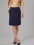 64% Polyester (Recycled), 34% Wool, 2% LYCRA® Elastane. A-line skirt with centre back vent, slanted side pockets, twin buttons on waistband